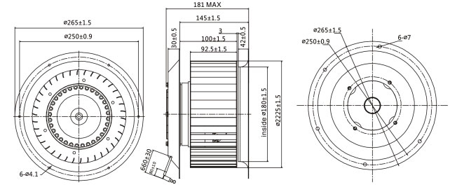 ?、偌夹g(shù)參數(shù):風(fēng)輪直徑為225mm,由4極和6極額定電壓為230/400V,頻率50Hz,分單相電容運(yùn)轉(zhuǎn)和三相異步運(yùn)轉(zhuǎn)電機(jī)組成,可提供1800m3/h和1300m3/h的風(fēng)量要求。