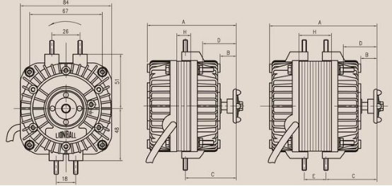 該款電機(jī)裝有兩個(gè)支架安裝角,一側(cè)的螺絲間距為18mm,與之相對應(yīng)的一側(cè)螺絲間距為26mm。根據(jù)電機(jī)鐵芯厚度和繞線參數(shù)的不同,共有輸出功率為3W到34W等9種型號的電機(jī)供客戶選擇。額定電壓有220~240V,50/60Hz和 110~115V,50/60Hz兩種。對于客戶需求的不同的引出線長度、前后端蓋的樣式、后端蓋是否帶螺紋孔、特殊的使用環(huán)境等均能按要求設(shè)計(jì)定做。為最大限度的發(fā)揮電機(jī)性能,我司可提供風(fēng)葉、安裝支架、網(wǎng)罩、法蘭等產(chǎn)品附件,購買前請?jiān)敿?xì)說明風(fēng)葉氣流風(fēng)向和傾斜角度。產(chǎn)品可作為商業(yè)冷柜冷庫、制冰機(jī)、冷風(fēng)機(jī)、冷水機(jī)、冷凝機(jī)組、中央空調(diào)、取暖器、啤酒機(jī)、攪拌機(jī)等設(shè)備的理想配套產(chǎn)品。