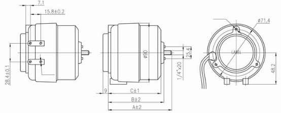 | 型號 | 額定電壓 | 頻率 | 輸入功率 | 輸出功率 | 額定電流 | 轉(zhuǎn)向 | A mm | B mm | C mm |